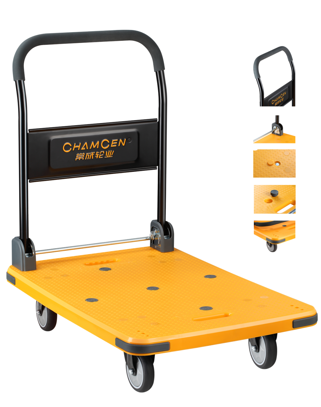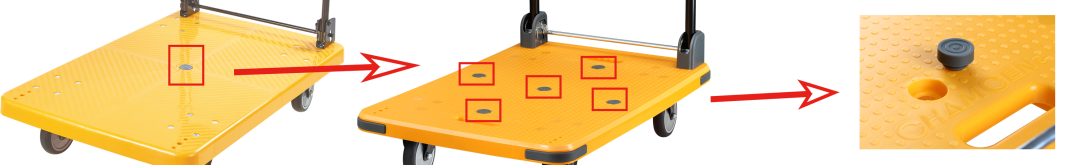 5.我們還額外在手推車底板4個方向新增4個防滑蓋,貨物放置更穩固。