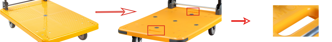 6.此(cǐ)外,我們在手推車底板兩側設置了符合人體工程學的手提孔,提高了手推車便攜性、實用性、多功(gōng)能性。