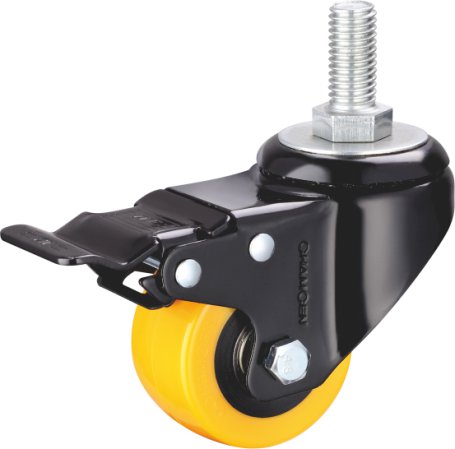 A4-1.5寸絲(sī)杆雙刹(shā)橙黃色聚氨(ān)酯輪
