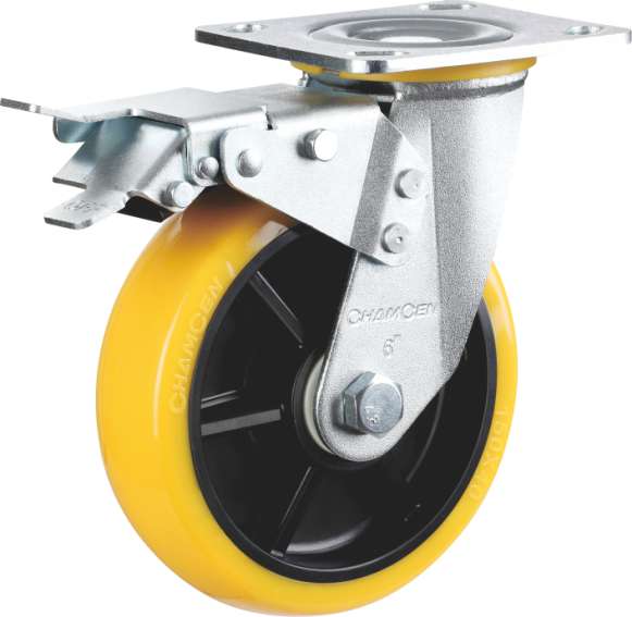 K2-4寸平底雙刹(shā)橙黃色聚(jù)氨酯輪